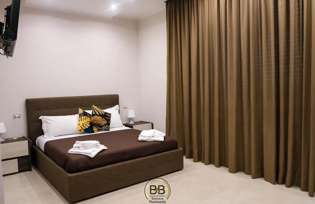 Alcune camere del B&B Terrazza Nazionale sono con l'aria condizionata e hanno un armadietto e un bollitore. Ci sono un bollitore elettrico e un frigo per il tuo comfort.